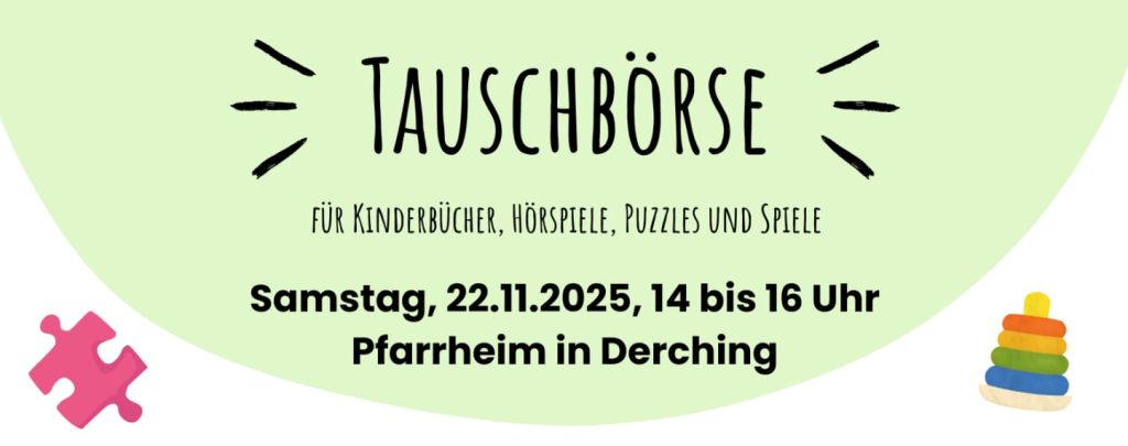 FÜR KINDERBÜCHER, HÖRSPIELE, PUZZLES UND SPIELE Samstag, 22.11.2025, 14 bis 16 Uhr Pfarrheim in Derching